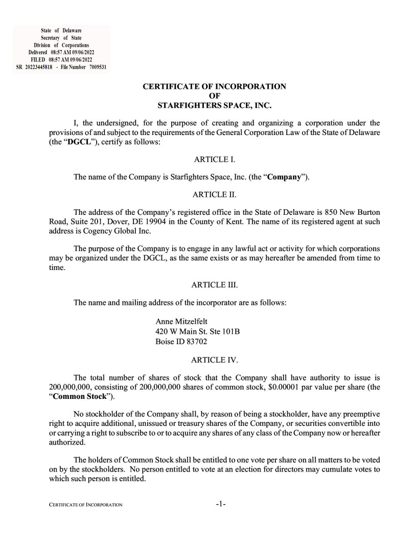 August 16, 2024 > Form 1-A > Starfighters Space, Inc.