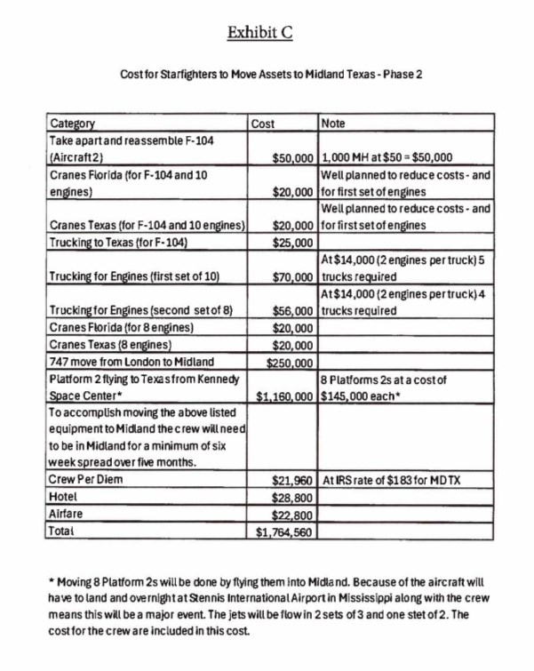 A. Relocation Costs. MDC shall provide Company with certain funding for the costs associated with Company's relocation of the Assets from Cape Canaveral, Florida, to the Midland International Air & Space Port (the "Relocation Costs") as contemplated by Section III.A. The Relocation Costs are more particularly described in Exhibit C. which is attached hereto and incorporated herein for all purposes. Notwithstanding any contrary provision contained herein, MDC shall not be required to reimburse Company for the Relocation Costs in excess of Two Million, Fifty-One Thousand, Five Hundred Sixty and No/100 Dollars ($2,051,560.00) in the aggregate. MDC shall pay Relocation Costs within ten (10) days after receiving written notice from Company that a relocation has commenced and is in progress. The written notice shall contain a summary of the relocation operations. including a timeline, budget, and list of incurred and anticipated expenses. Relocation Costs pre-paid to Company shall be verified by invoices after a relocation is complete. Company shall submit all invoices relating to a relocation operation within sixty (60) days following the completion of the same. Following MDC's receipt of a relocation invoice, MDC shall determine whether the amount pre-paid to Company exceeds the actual invoice total for the relocation. If MDC determines that the pre-paid amount exceeds the actual invoice total, then the MDC Executive Director shall notify Company in writing of such excess payment. Company shall remit payment to MDC in the amount of the excess payment, which shall become due and payable thirty (30) days after the date the written notice of excess payment is sent by MDC.
